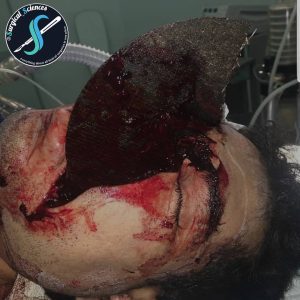 خلاصه داداشمون از این جهت شانس میاره که تیم جراحی پلاستیکش کار درست بودن و با خارج کردن دقیق جسم خارجی و دبریدمان و برداشن لبه های دفورم شده زخم و فیکساسیون استخوان های شکسته شده، میتونه به زندگیش ادامه بده و زیباییش زیاد تحت تاثیر قرار نگیره